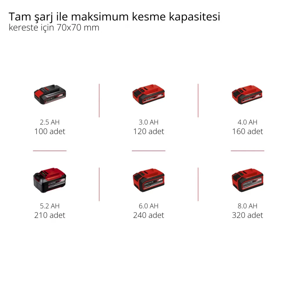 • En iyi sonuçlar için öneri: 2.5 Ah ve daha büyük kapasiteli akü