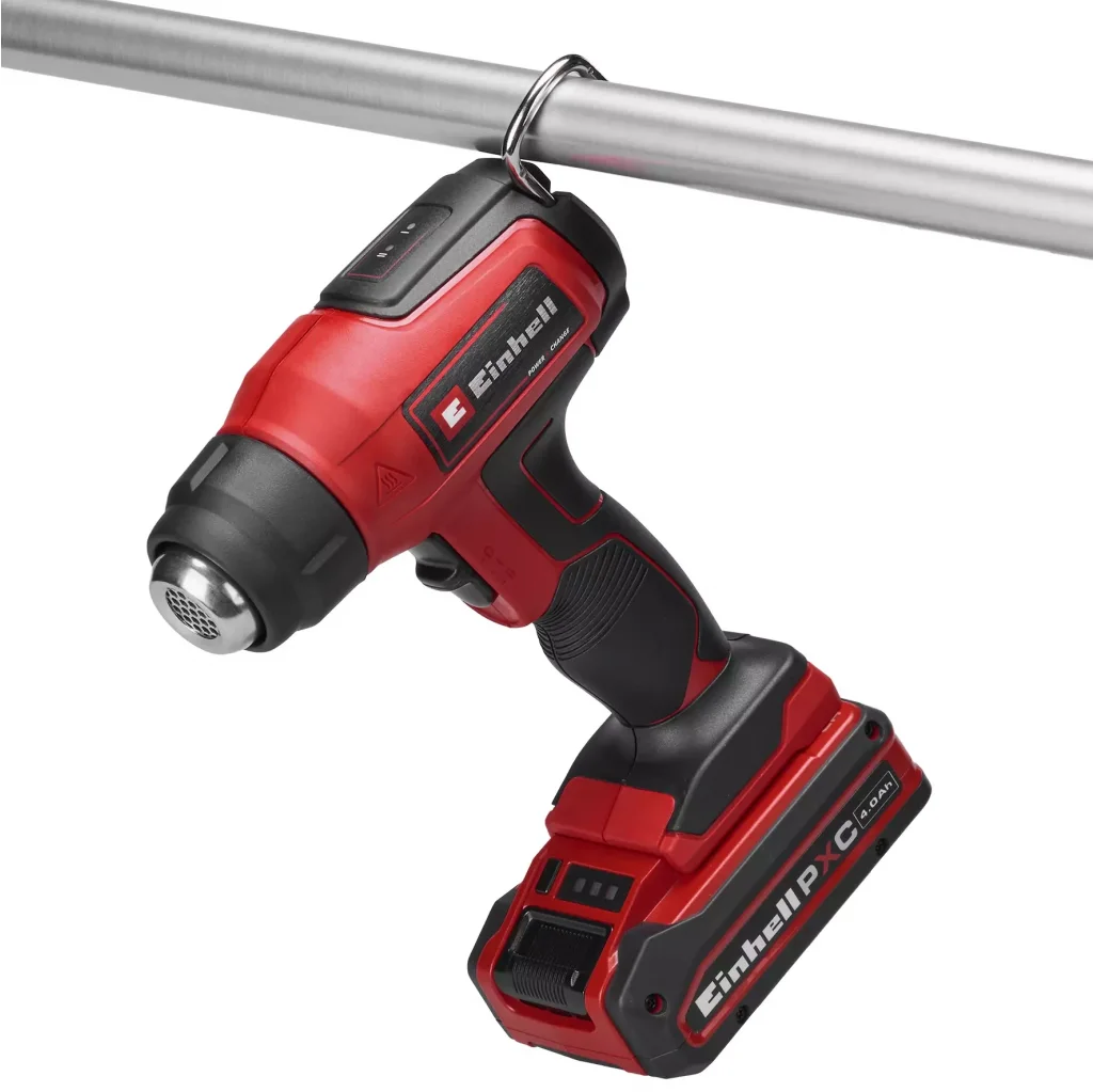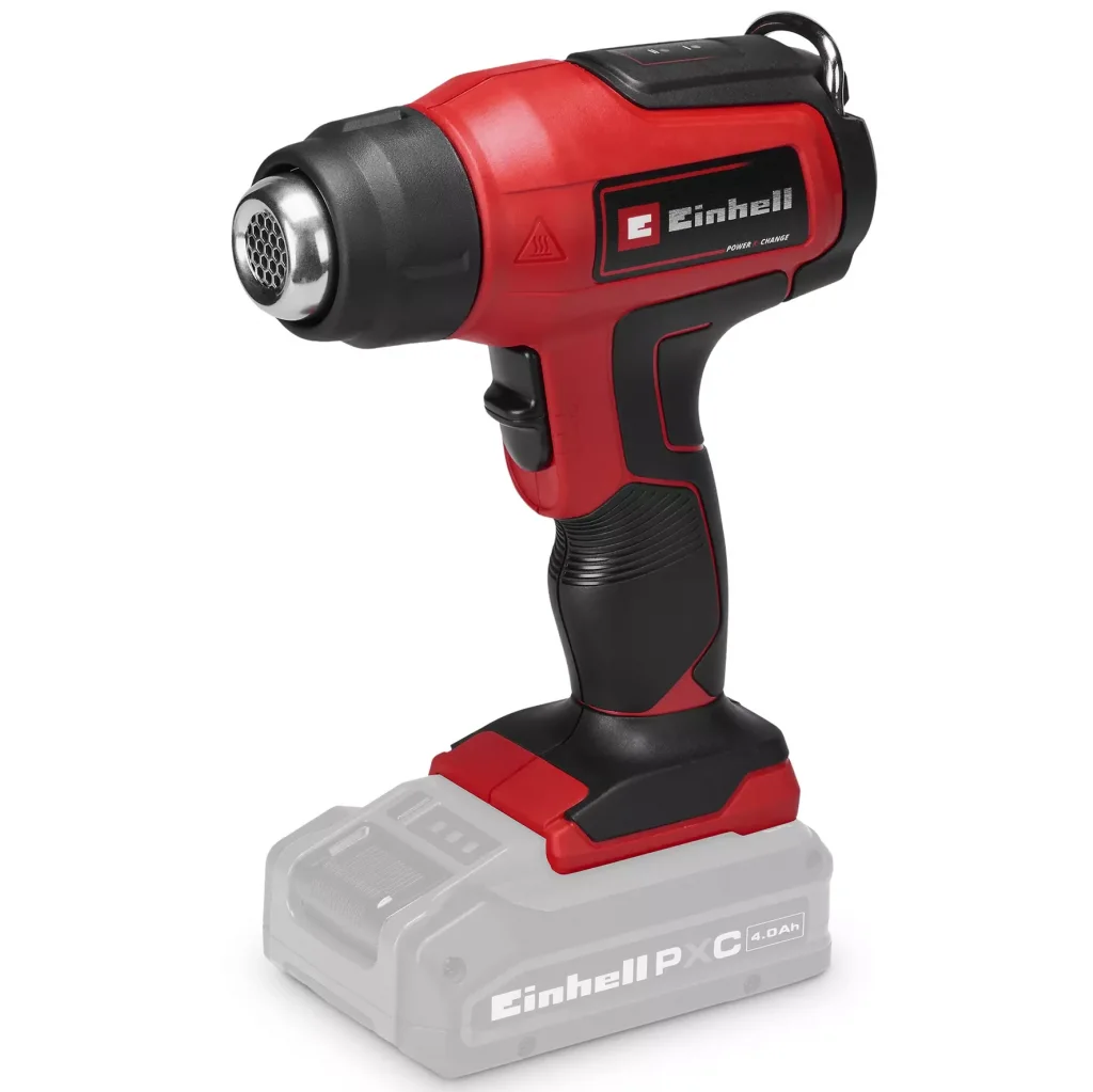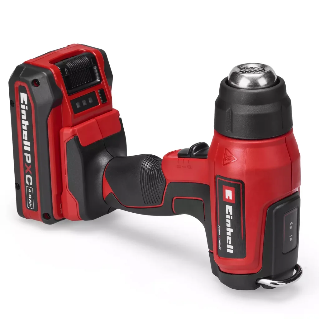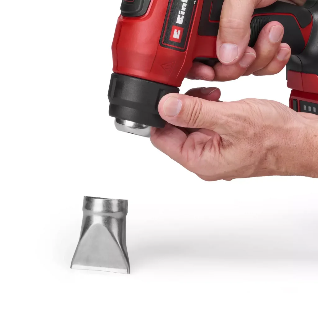 Einhell TE-HA 18 Li - Solo akülü sıcak hava tabancası, yüksek kaliteli Power X-Change ailesinin bir üyesidir. Güçlü sıcak hava tabancası, 2 sıcaklık seviyesi ve bir LED ekran ile donatılmıştır : Model yapımında plastiklerin nazikçe şekillendirilmesi, yapışkan folyoların veya eski vernik, yapışkan artıkları ve boya katmanları çıkarılması. Seçilen sıcaklık seviyesi LED ekranda bir bakışta görülebilir. Aşırı ısınma koruması, güvenli çalışmayı sağlar. Teslimat kapsamına dahil olan redüksiyon nozulunun, geniş jet nozulun ve reflektör nozulunun kolayca çıkarılmasını destekleyen mekanik nozül ejektörü mevcuttur. Düz yüzeyi sabit kullanıma uygundur. Açılır metal kanca esnek çalışma ve saklama sağlar. Yumuşak kavramalı ergonomik tutamak, sağlam ve güvenli bir tutuş sağlar. Teslimata akü ve şarj cihazı dahil değildir (ayrı satılır).