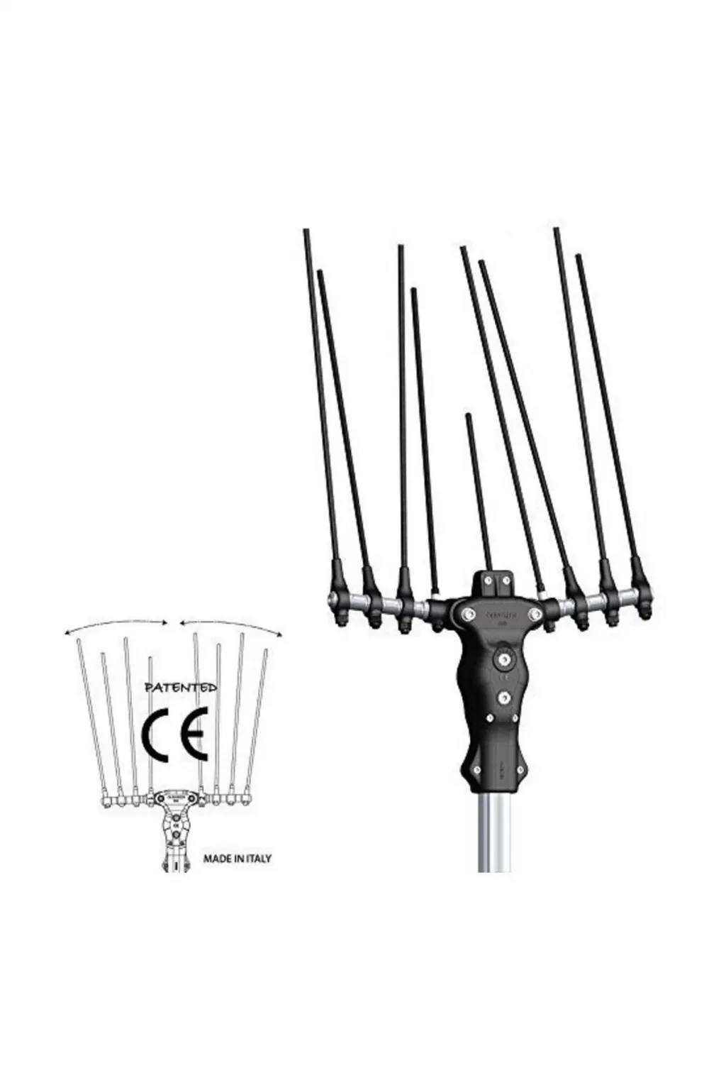 Çok hafif, sorunsuz bir hasat makinesidir. Gün boyu çalışma için 60 Ah kapasiteli akü yeterlidir. Akü ile arasında ayrıca bir kart bulunmaz doğrudan aküye bağlanır. Karbon çubukları tutan mekanizma alüminyumdur. Sağ-sol hareket mekanizması ile filiz kırma oranı çok düşüktür.